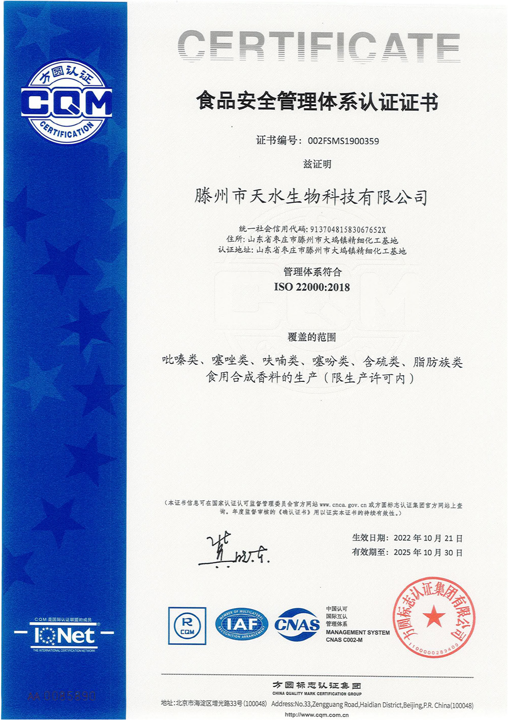 滕州市天水生物科技有限公司成立于2011年9月,是目前國內雜環(huán)類合成食品香料、日化香料和醫(yī)藥中間體生產(chǎn)經(jīng)營的綜合性企業(yè)。坐落于山東省滕州市生物醫(yī)藥產(chǎn)業(yè)基地,總投資5000余萬元,占地面積約30000平方米,員工百余人。公司先后被評為高新技術企業(yè)、專精特新中小企業(yè)、科技型中小企業(yè),建有市級重點實驗室1處,并先后獲得ISO9001質量體系認證、ISO22000食品安全體系認證、kosher認證和Halal認證。是香精香料及食品配料協(xié)會會員單位及滕州市中小企業(yè)協(xié)會理事單位。